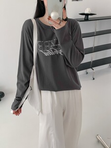 秋季薄款韩系水洗天丝雪花棉长袖tee圆领套头休闲打底衫T恤女ZL3