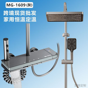 跨境厂家批发精铜淋浴套装增压恒温数显枪灰色黑色花洒全套一整套