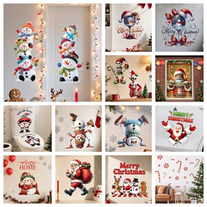 圣诞老人墙贴 圣诞节派对狂欢装饰品门窗墙壁场景布置遮丑贴纸