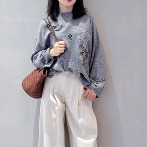 现货 时尚重工刺绣流苏设计2025秋季宽松圆领套头针织衫毛衣D1491