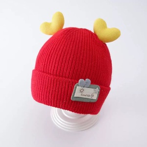 超萌童帽秋冬季儿童保暖帽可爱桃心针织帽加绒加厚宝宝套头毛线帽
