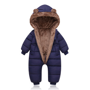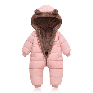 秋冬新款婴幼儿加绒加厚连体爬爬服外出服棉服宝宝连体羽绒服哈衣