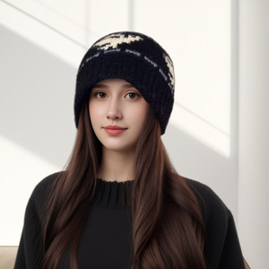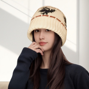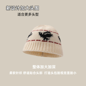 跨境秋冬渔夫帽费尔岛风保暖百搭大头围女帽和平鸽提花针织渔夫帽