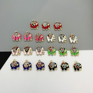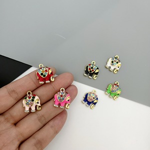 DIY配件点钻彩色大象吊坠合金滴油钥匙扣耳饰项链吊坠配饰批发