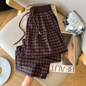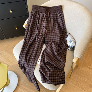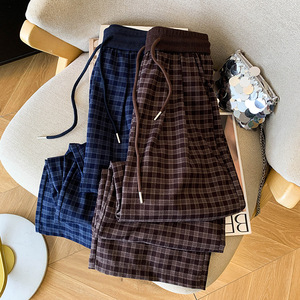 格子阔腿裤女2025新款秋季设计感直筒显瘦宽松百搭休闲慵懒风裤子
