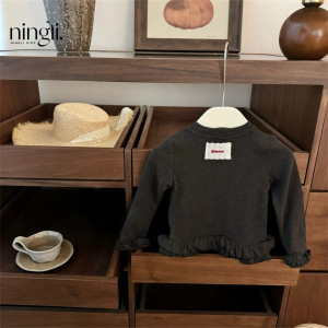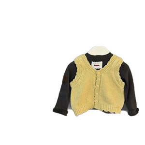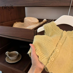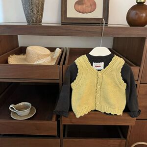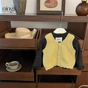 【柠里】一抹黄!韩系女宝宝可爱显白黄色针织马甲花边T恤套装潮款