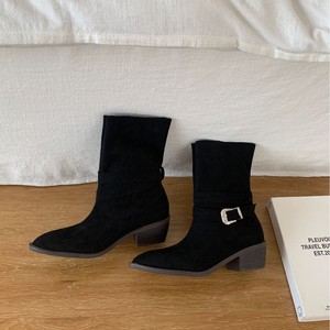 欧货老钱风小众设计方头粗跟皮带扣短靴瘦瘦靴2025秋冬马丁靴女