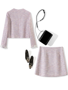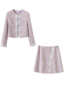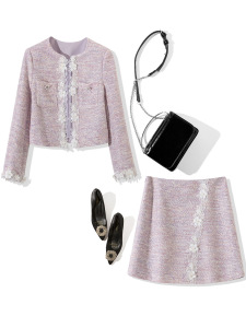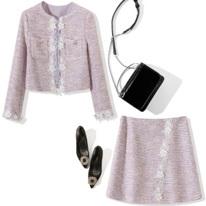 T1770 2025年秋装新款女装圆领长袖车花上衣+车花半裙两件套裙装