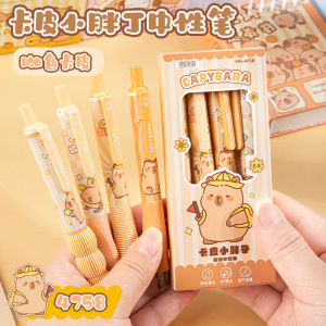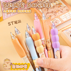 可爱卡皮巴拉按动中性笔柔软护套高颜值学生ST头速干顺滑刷题笔
