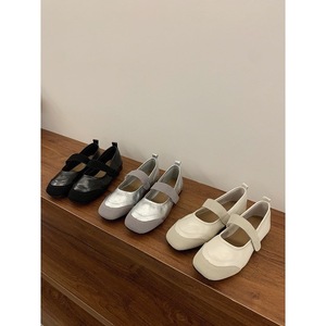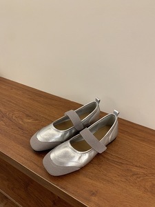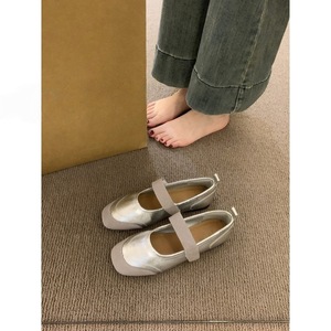 复古方头银色拼接浅口单鞋女春夏秋2025年新款仙女休闲平底玛丽珍