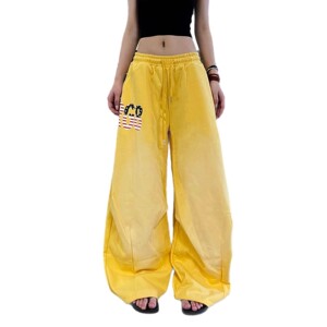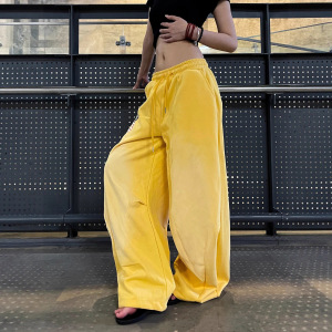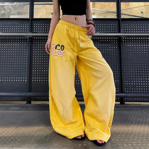 Y2K辣妹印花复古休闲卫裤女秋冬宽松显瘦百搭阔腿慵懒爵士弯刀裤