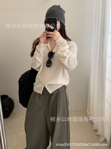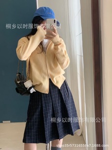 以时 25秋冬新款百分百全羊毛针织小开衫 森系连帽双头连外套 女