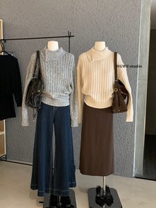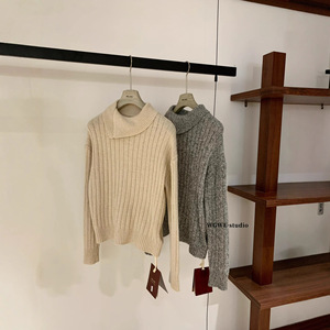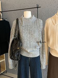 【WGWE】7198广州十三行女装2025秋装新款翻领宽松套头毛衣针织衫