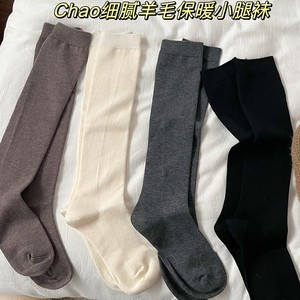 新款羊毛小腿袜平板简约百搭堆堆袜秋冬季灰色学院风纯色及膝袜子