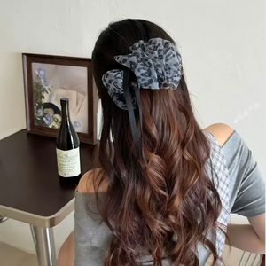 韩系豹纹网纱飘带香蕉夹女2025新款后脑勺气质马尾夹复古百搭发饰