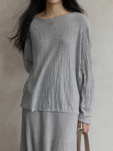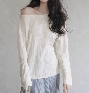 贰羊【亭瞳】新中式纹理白色慵懒松弛感百搭宽松一字肩上衣女