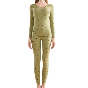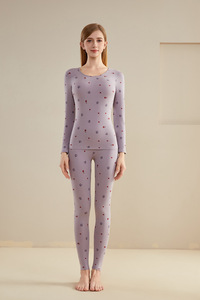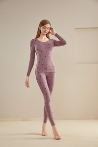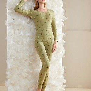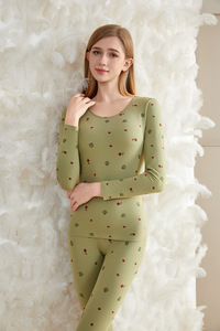 秋冬新款圆领保暖内衣女卡通印花长袖长裤打底套装青少年可爱套装