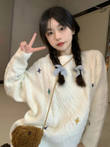 日系甜美可爱软糯毛衣女2025秋冬复古宽松设计感小众慵懒风针织衫