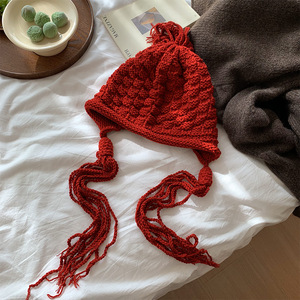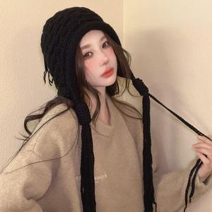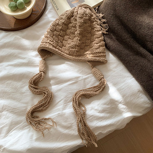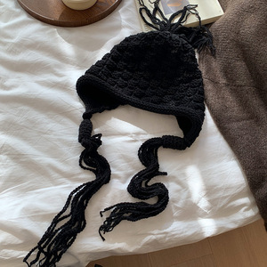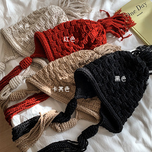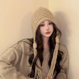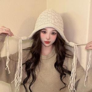 手工针织流苏包头帽保暖护耳帽时尚秋冬款头套毛线帽堆堆帽子女潮