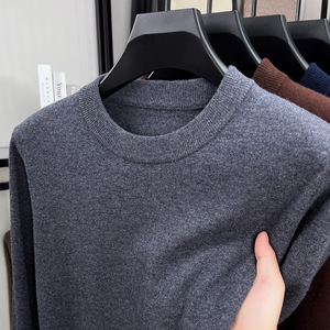 秋冬季新款100%绵羊毛保暖针织打底衫休闲圆领长袖柔软内搭毛衣