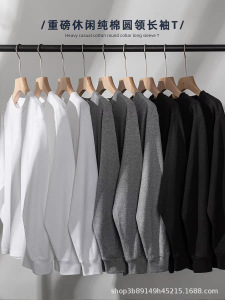 360g重磅打底衫春秋纯棉圆领卫衣厚内搭长袖T恤纯色百搭上衣男女