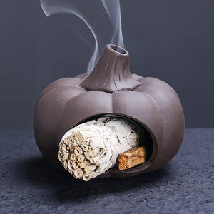 跨境紫砂鼠尾草香薰炉创意万圣节南瓜秘鲁圣木燃烧支架托盘熏香炉