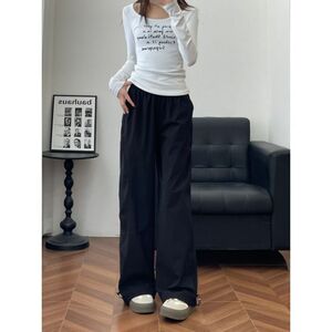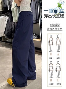 藏青色速干防晒工装裤女薄款新款美式宽松阔腿休闲户外运动裤批发