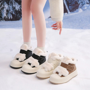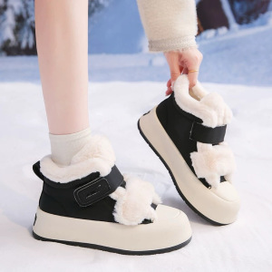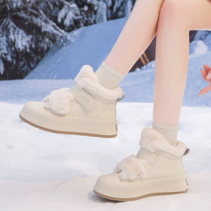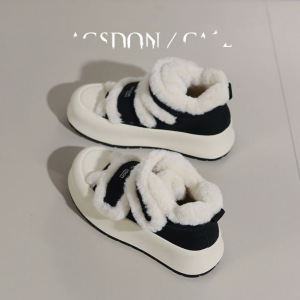加绒小白鞋女2025新款冬季厚底保暖棉鞋魔术贴雪地靴跨境批发时尚