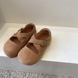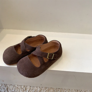 复古森系真皮童鞋小童儿童勃肯鞋交叉带浅口女童小皮鞋宝宝小单鞋