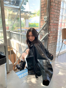 皮衣外套女酷飒风小个子2025超火外套皮衣春季今年流行皮衣感黑色
