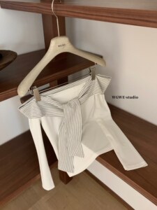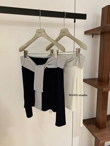 WGWE7006广州十三行女装2025秋装新款拼接一字肩长袖T恤显瘦上衣