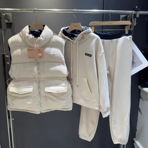 潮牌25ss秋冬新款三件套棉服马甲+卫衣加绒加厚搭配马甲三件套