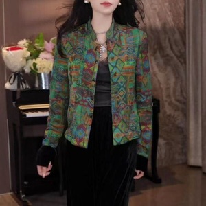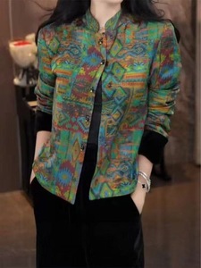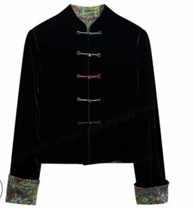 (双面穿)新中式国风印花盘扣黑色丝绒外套女气质双面穿宽松上衣