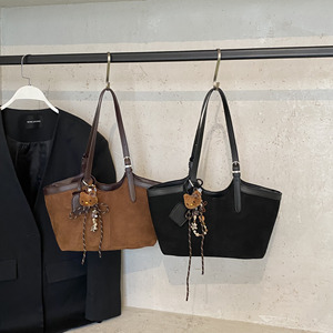 韩版麂皮绒包撞色洋气拼接设计菜篮子托特包大容量新款通勤单肩包