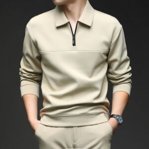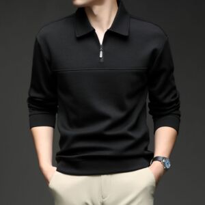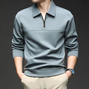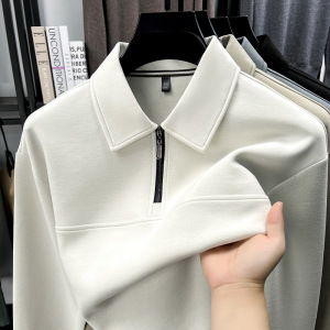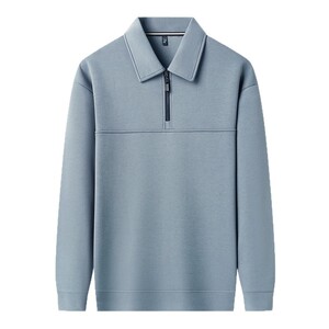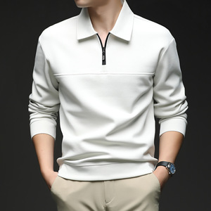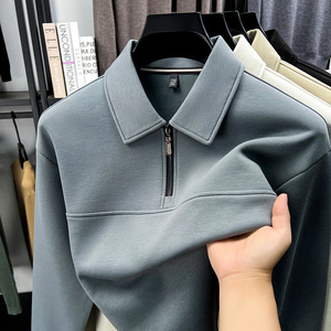 半拉链翻领长袖T恤中年男士春秋商务休闲纯色卫衣打底polo衫上衣