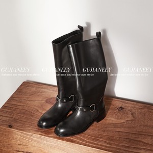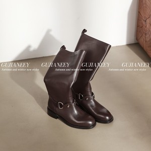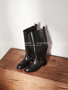 欧洲站女鞋25秋冬时尚皮带扣软胎牛皮圆头套筒平底休闲舒适皮长靴