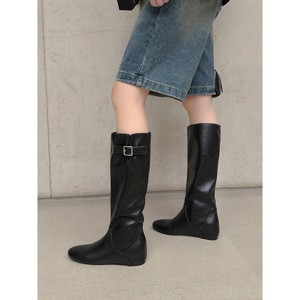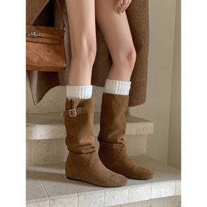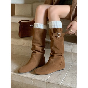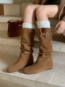 4cm内增高随性褶皱堆堆靴女秋冬新款柔软骑士靴复古高筒西部靴子