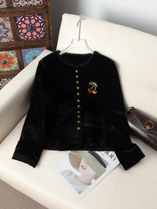【彩南瓜】新中式国风丝绒长袖外套女装黑色显瘦气质百搭秋装上衣