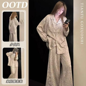 【优质仿棉】韩系高级感豹纹睡衣女秋季新款大码长袖长裤家居服