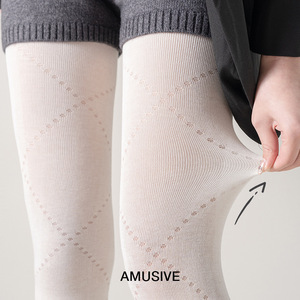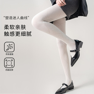 早秋灰色薄款打底裤miu系少女棉质微透显瘦镂空菱形格纯欲连裤袜