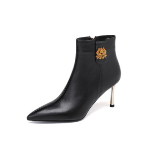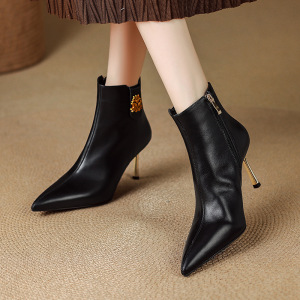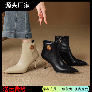尖头短靴女细跟2025新款气质高级不累脚黑色及踝靴裸靴秋冬高跟鞋