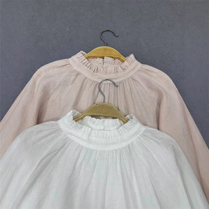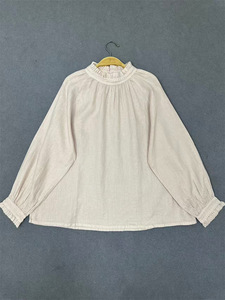 文艺甜美亚麻木耳领套头长袖衬衫 日系宽松百搭上衣女