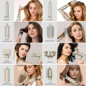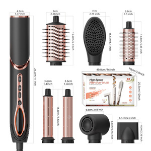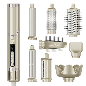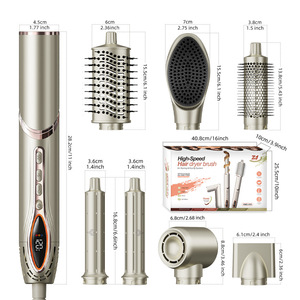 跨境八合一高速吹风梳多功能自动卷发棒吹风机干湿直卷四用热风梳