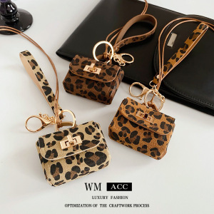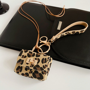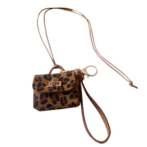 皮革豹纹包包吊坠项链复古时尚设计老钱风毛衣链小众气质百搭项饰