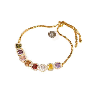 新款高仿多巴胺几何方糖锆石闺蜜手饰女轻奢小众精致巨好看的手链