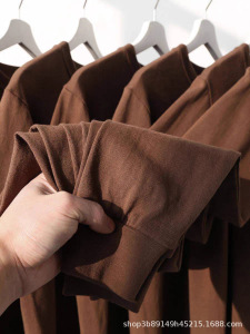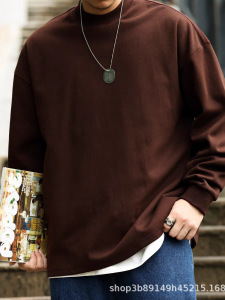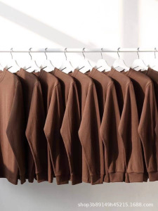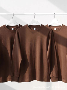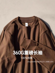 360g重磅纯棉长袖宽松咖啡色上衣T恤打底衫男女情侣款早秋圆领潮