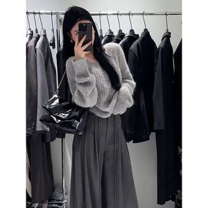 韩风chic盐系轻熟灰色针织毛衣阔腿裤两件套装秋季女装2025年新款