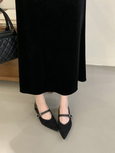 绒面复古玛丽珍尖头内增高小单鞋2025秋季新款百搭懒人踩跟女鞋