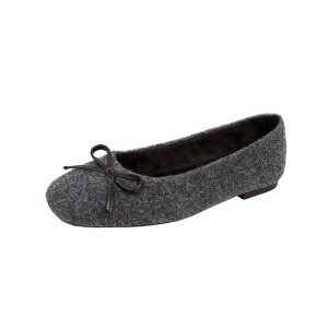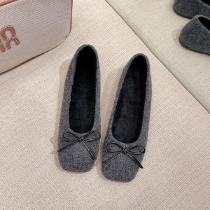 葡萄妈秋冬新款时尚蝴蝶结毛呢绒绒保暖浅口芭蕾平底单鞋女