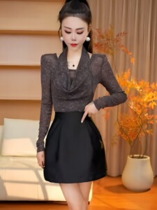 法式设计感挂脖打底衫女2025秋冬季新款修身显瘦弹力辣妹长袖t恤